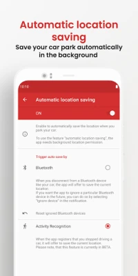 • Save car park automatically when leaving your car